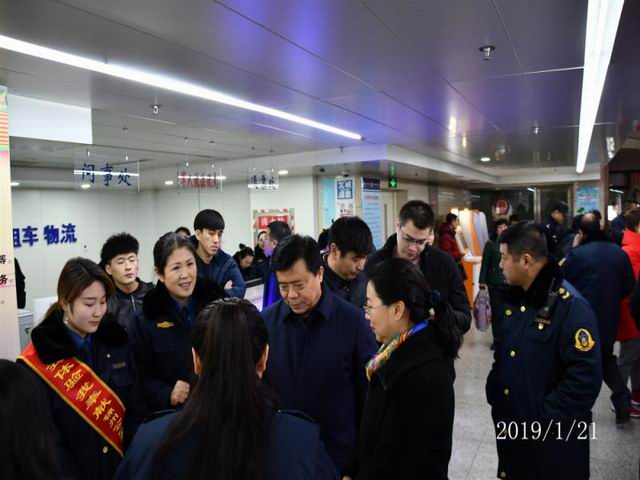今天是2019年春運(yùn)的第一天,上午副市長楊林在市交通局、市交通公安分局、市運(yùn)管處、交通集團(tuán)相關(guān)領(lǐng)導(dǎo)的陪同下來到我公司檢查2019年春運(yùn)工作開展情況。楊林市長先后來到售票大廳、農(nóng)民工服務(wù)站、三品檢查站、物流和消防監(jiān)控室,聽取了公司黨委書記、總經(jīng)理閆麗梅春運(yùn)期間各項(xiàng)工作安排,并慰問了工作在春運(yùn)第一線的廣大干部職工,送上了市委、市政府領(lǐng)導(dǎo)的新春問候。他關(guān)切地詢問了客運(yùn)站的生產(chǎn)經(jīng)營情況,需要政府在哪方面給予幫助,并囑咐大家在企業(yè)經(jīng)濟(jì)困難的情況下也要做好安全源頭管理和優(yōu)質(zhì)服務(wù)工作,以飽滿的熱情和高度的責(zé)任感投入到春運(yùn)保障工作中,讓旅客切實(shí)感受到春運(yùn)旅途的溫暖。楊林市長先后來到售票大廳、農(nóng)民工服務(wù)站、三品檢查站、物流和消防監(jiān)控室,聽取了公司黨委書記、總經(jīng)理閆麗梅春運(yùn)期間各項(xiàng)工作安排,并慰問了工作在春運(yùn)第一線的廣大干部職工,送上了市委、市政府領(lǐng)導(dǎo)的新春問候。他關(guān)切地詢問了客運(yùn)站的生產(chǎn)經(jīng)營情況,需要政府在哪方面給予幫助,并囑咐大家在企業(yè)經(jīng)濟(jì)困難的情況下也要做好安全源頭管理和優(yōu)質(zhì)服務(wù)工作,以飽滿的熱情和高度的責(zé)任感投入到春運(yùn)保障工作中,讓旅客切實(shí)感受到春運(yùn)旅途的溫暖。