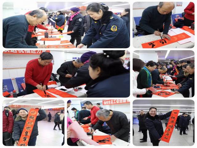 1月29日上午10:00,錦州客運(yùn)站售票大廳內(nèi)洋溢著濃濃的節(jié)日氣氛,由錦州市總工會(huì)主辦的“迎新春寫(xiě)春聯(lián)送祝福進(jìn)萬(wàn)家”活動(dòng),在客運(yùn)站售票大廳內(nèi)熱烈展開(kāi)。 書(shū)法家們揮毫潑墨,以筆為友,以字傳情,用春聯(lián)為到站乘車(chē)的廣大旅客和客運(yùn)站干部職工送來(lái)了新春的慰問(wèn)及節(jié)日的祝福。 活動(dòng)現(xiàn)場(chǎng)人頭攢動(dòng),熱鬧不已,短短1個(gè)多小時(shí),書(shū)法家們就書(shū)寫(xiě)了幾十副春聯(lián)和“!弊。一副副行云流水的丹青墨寶,一句句寓意美好的春聯(lián),為客運(yùn)站的春節(jié)旅客運(yùn)輸工作送上了一道道“文化大餐”,也給即將來(lái)臨的新春佳節(jié)增添了濃濃的年味兒。 客運(yùn)站黨委書(shū)記、總經(jīng)理閆麗梅親臨活動(dòng)現(xiàn)場(chǎng)表示錦州市總工會(huì)開(kāi)展的“迎新春寫(xiě)春聯(lián)送祝福進(jìn)萬(wàn)家”活動(dòng),不僅使廣大旅客在客運(yùn)站內(nèi)感受到了歡樂(lè)的節(jié)日氣氛,同時(shí)也弘揚(yáng)了我國(guó)書(shū)法藝術(shù)的魅力,增加廣大職工群眾對(duì)中國(guó)傳統(tǒng)文化的熱愛(ài),使客運(yùn)站的年味兒有層次、有內(nèi)涵。