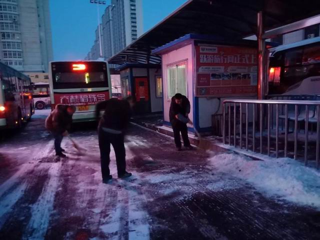 2月14日傍晚,錦州城區(qū)相繼出現(xiàn)明顯降雪,因冰雪路面,很多市民放棄私家車(chē)、電動(dòng)車(chē)和自行車(chē)選擇公交車(chē)出行,給公交運(yùn)營(yíng)增加了壓力。面對(duì)困難,錦州公交人扛起了確保錦城市民在惡劣天氣出行的重任,千余名公交人冒雪前行,奮戰(zhàn)在公交運(yùn)營(yíng)第一線(xiàn)。 冰雪突襲,嚴(yán)寒肆虐,公交公司全體員工以雪為令,全員奮戰(zhàn)第一線(xiàn),把抗冰雪、保安全、保暢通作為首要任務(wù),及時(shí)啟動(dòng)冰凍雨雪惡劣天氣應(yīng)急預(yù)案,全天候?qū)?1條線(xiàn)路582臺(tái)公交車(chē)進(jìn)行監(jiān)控,積極做好綜合調(diào)度、公交運(yùn)營(yíng)安全、車(chē)輛維修和后勤保障等各項(xiàng)應(yīng)對(duì)工作。公司黨委書(shū)記、總經(jīng)理李國(guó)政在降雪的第一時(shí)間要求調(diào)度中心、各運(yùn)營(yíng)公司、路隊(duì)提醒全體駕駛員減速慢行、注意行車(chē)安全,提醒乘客文明禮讓?zhuān)行虺塑?chē)。 15日早晨5時(shí)許,寒冬的夜色里,一輛輛整裝待發(fā)的公交車(chē)的車(chē)燈照亮了被白雪覆蓋的公交停車(chē)場(chǎng)。李總來(lái)到運(yùn)營(yíng)二公司和站前停車(chē)場(chǎng)的每一個(gè)調(diào)度室,走上每一輛待發(fā)的公交車(chē),叮囑每位駕駛員要提前打開(kāi)車(chē)門(mén),引導(dǎo)乘客上車(chē),躲避風(fēng)寒。特別是著重提醒205、201、202路等郊區(qū)線(xiàn)路,還有晚收車(chē)的1、3、8、115路等線(xiàn)路的駕駛員,不要急于收車(chē),確保行車(chē)安全、乘客安全。 盡管大雪紛飛,天寒地凍,公司未因冰凍天氣發(fā)生重大交通事故。公交人用自己的堅(jiān)守、執(zhí)著與奉獻(xiàn),譜寫(xiě)了一曲曲不懼風(fēng)雪,保民出行、道路暢通的交通之歌。